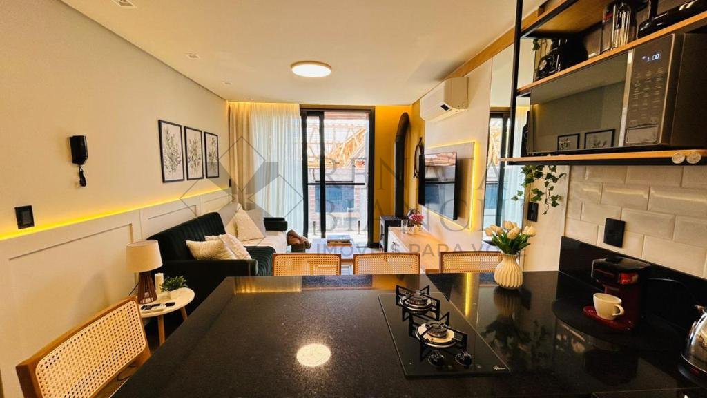 Com cozinha americana, salas de estar e jantar com sacada, 1 dormitório, 1 banheiro social e 1 vaga de garagem. Ótima orientação solar!