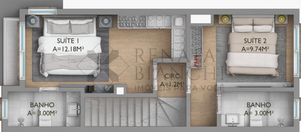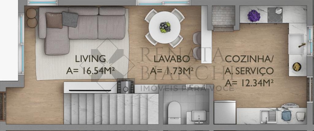 Com living para estar e jantar, lavabo, cozinha com área se serviço integrada e 2 suítes. Estacionamento para 1 carro.